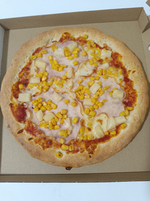 Ananász, Kukorica, Mozzarella sajt, Paradicsomos alap, Sonka