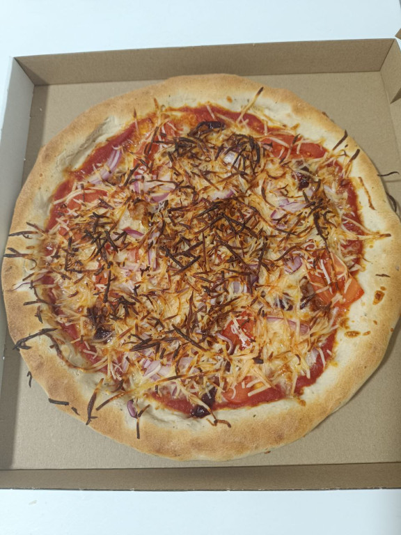 BBQ alap, Füstölt sajt, Gyros hús, Lilahagyma, Paradicsom